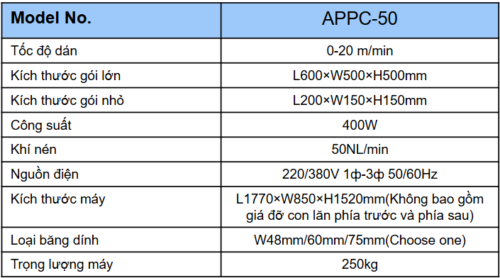 Dưới đây là những thông tin chi tiết về Model APPC-50, cho thấy khả năng vượt trội của thiết bị: