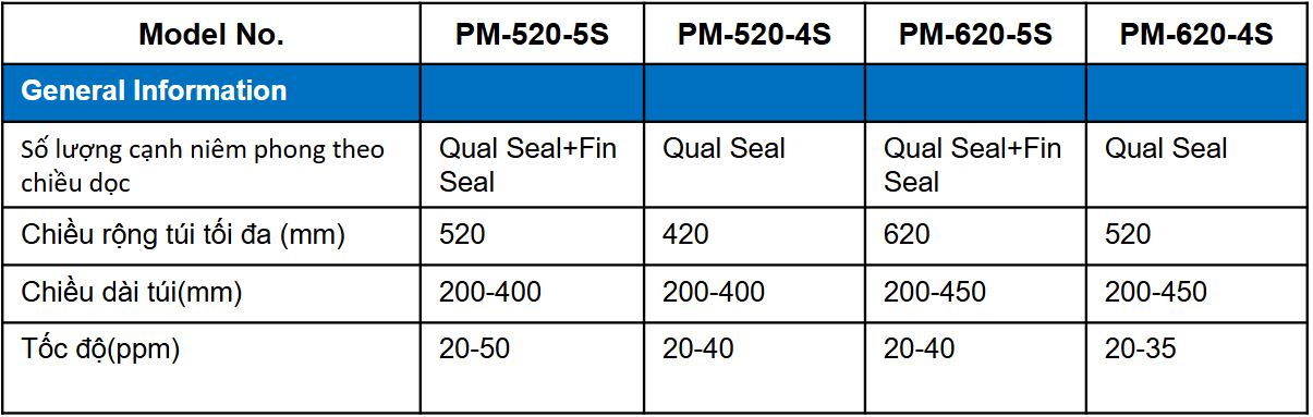 Để hiểu rõ hơn về khả năng của Máy Đóng Gói Hàn Bốn Cạnh, hãy cùng xem xét các thông số kỹ thuật chi tiết: